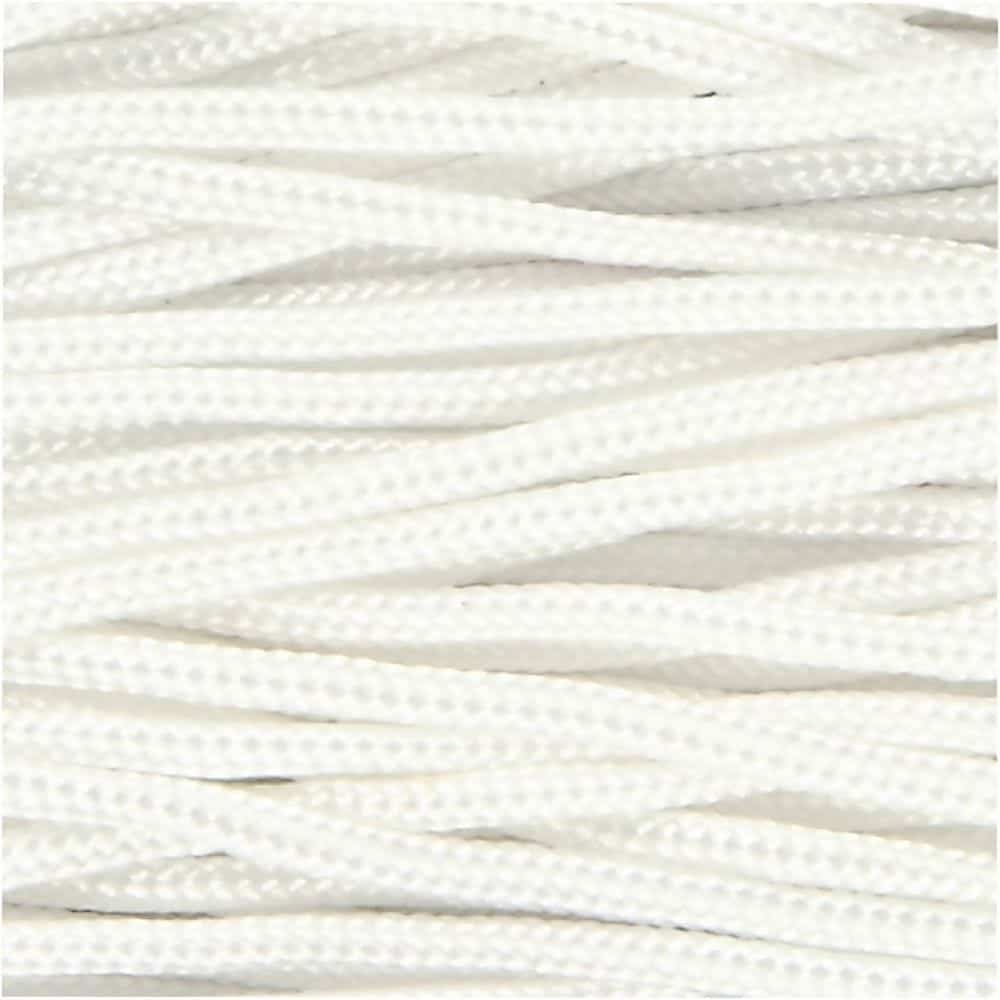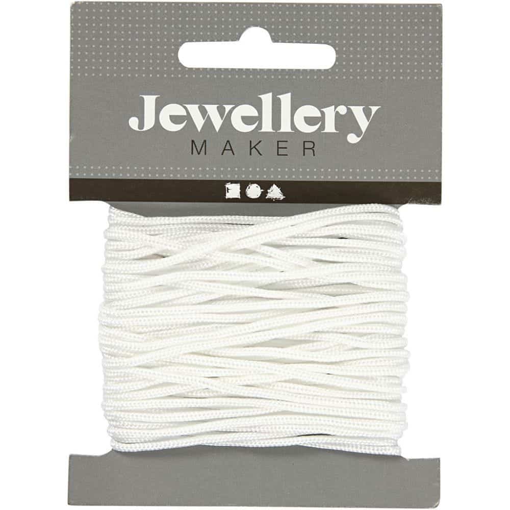 Goede kwaliteit, semi-glanzend, solide gekleurd nylon koord, ideaal voor macramé. Geleverd op een kaart van 8 meter, in het wit. Dikte 2mm.